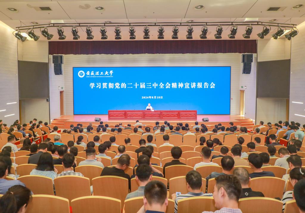 报告会上,郭永存围绕党的二十届三中全会的重大意义、深入学习领会习近平总书记在全会上的重要讲话精神、全面准确理解《决定》提出的进一步全面深化改革重大举措和全力以赴抓好全会精神贯彻落实等四个方面,紧密结合学校实际,对全会精神进行了全面宣讲和深入阐释。